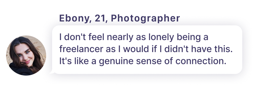 "I don't feel nearly as lonely being a freelancer as I would if I didn't have this. It's like a genuine sense of connection."