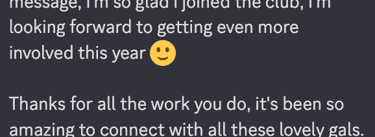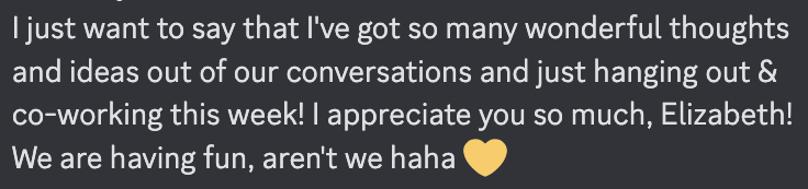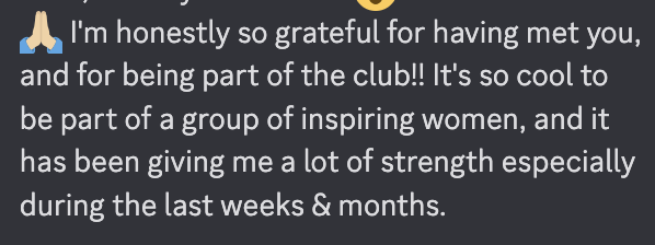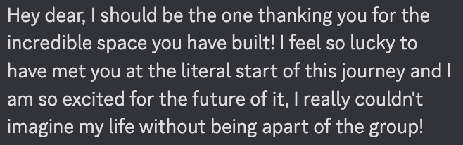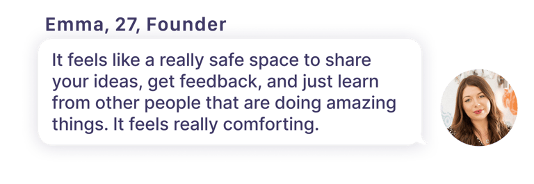 "It feels like a really safe space to share your ideas, get feedback, and just learn from other people that are doing amazing things. It feels really comforting."