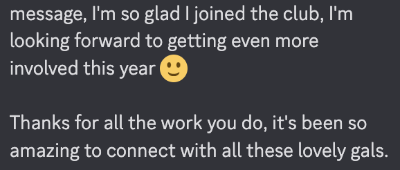 The vibe of our community is everything to us, so every member is uniquely important. Our applications are open to anyone, but our goal is to create the perfect harmony for switched-on, highly ambitious and deeply supportive girls who will push each other forward.